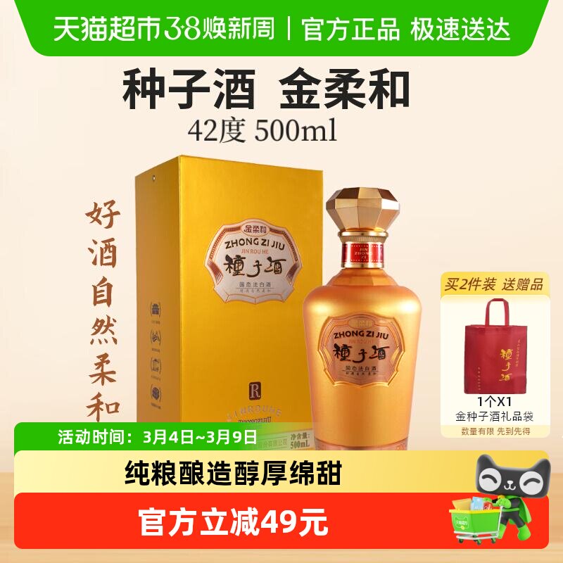 金种子酒金柔和42度500ml浓香型白酒纯粮食酒正品送礼自饮