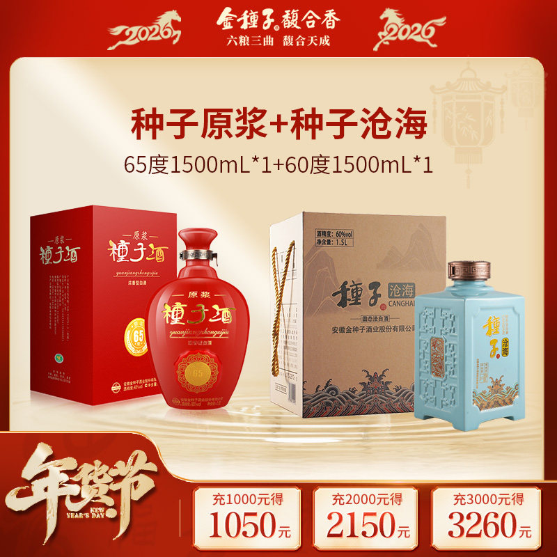 金种子酒 60度沧海+65度原浆组合装 高度白酒 浓香型 坛装收藏
