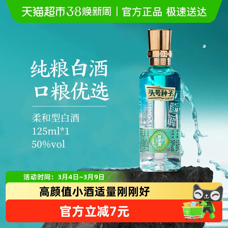 金种子酒头号种子酒50度125ml柔和型白酒光瓶小酒正品纯粮食口粮