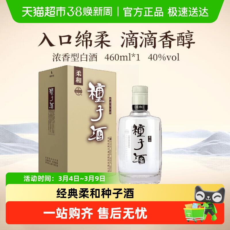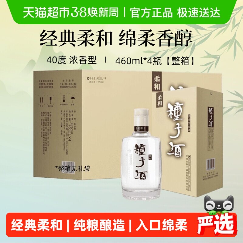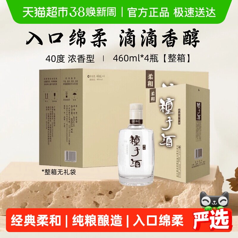 金种子柔和种子酒40度浓香型纯粮食酒460ml*4瓶整箱安徽白酒送礼