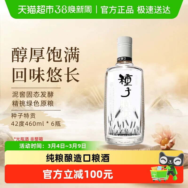 【酒厂直发】金种子 42度种子特贡460ML*6瓶纯粮食浓香型白酒整箱
