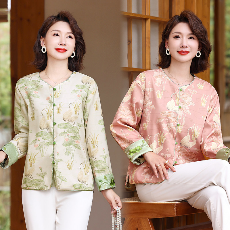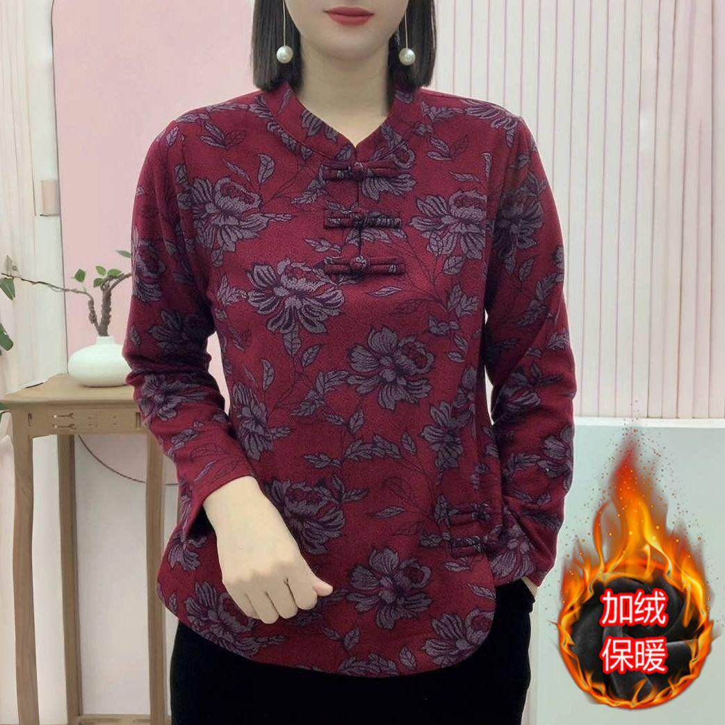 2026秋冬新款时尚中年妈妈打底衫上衣保暖印花小衫盘扣中国风唐装