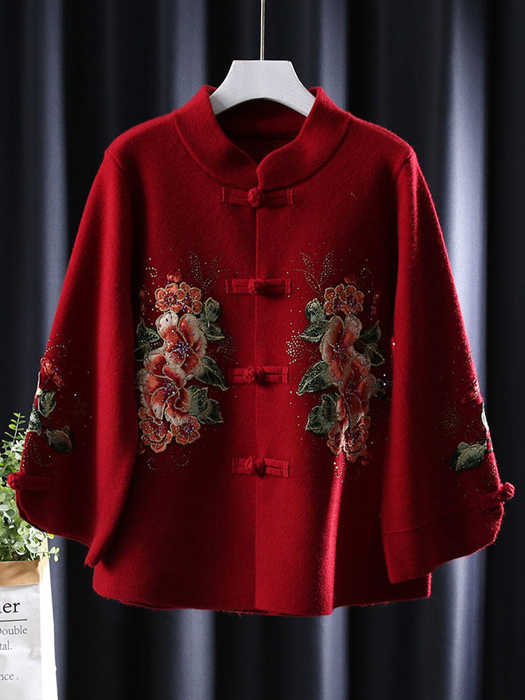 中国风刺绣中年妈妈装毛衣外套唐装本命年复古新中式绣花上衣秋装