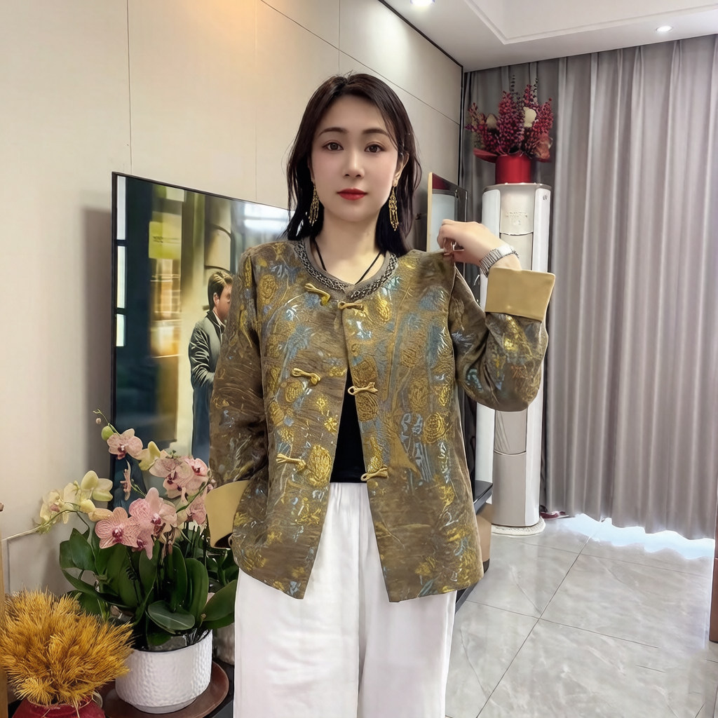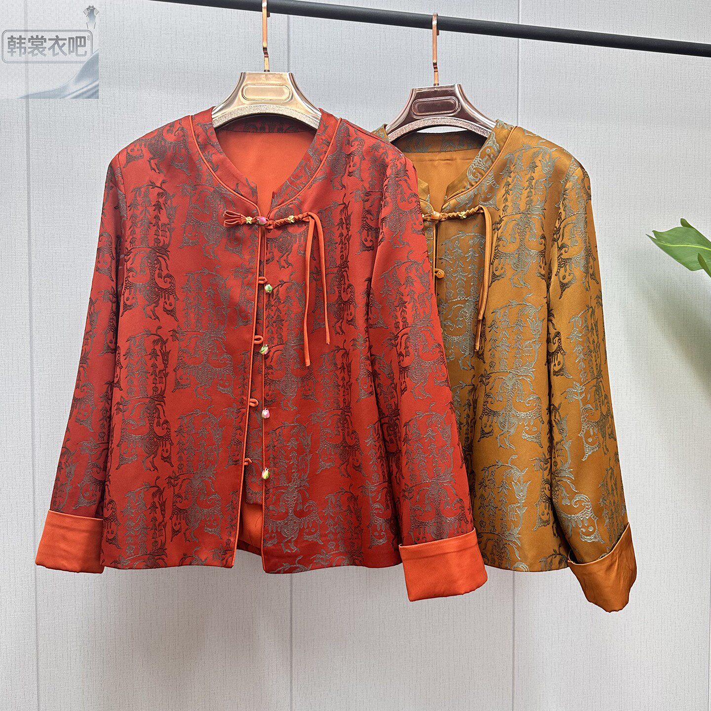 2026春装新款外套中年妈妈新中式国风提花缎唐装改良上衣减龄开衫