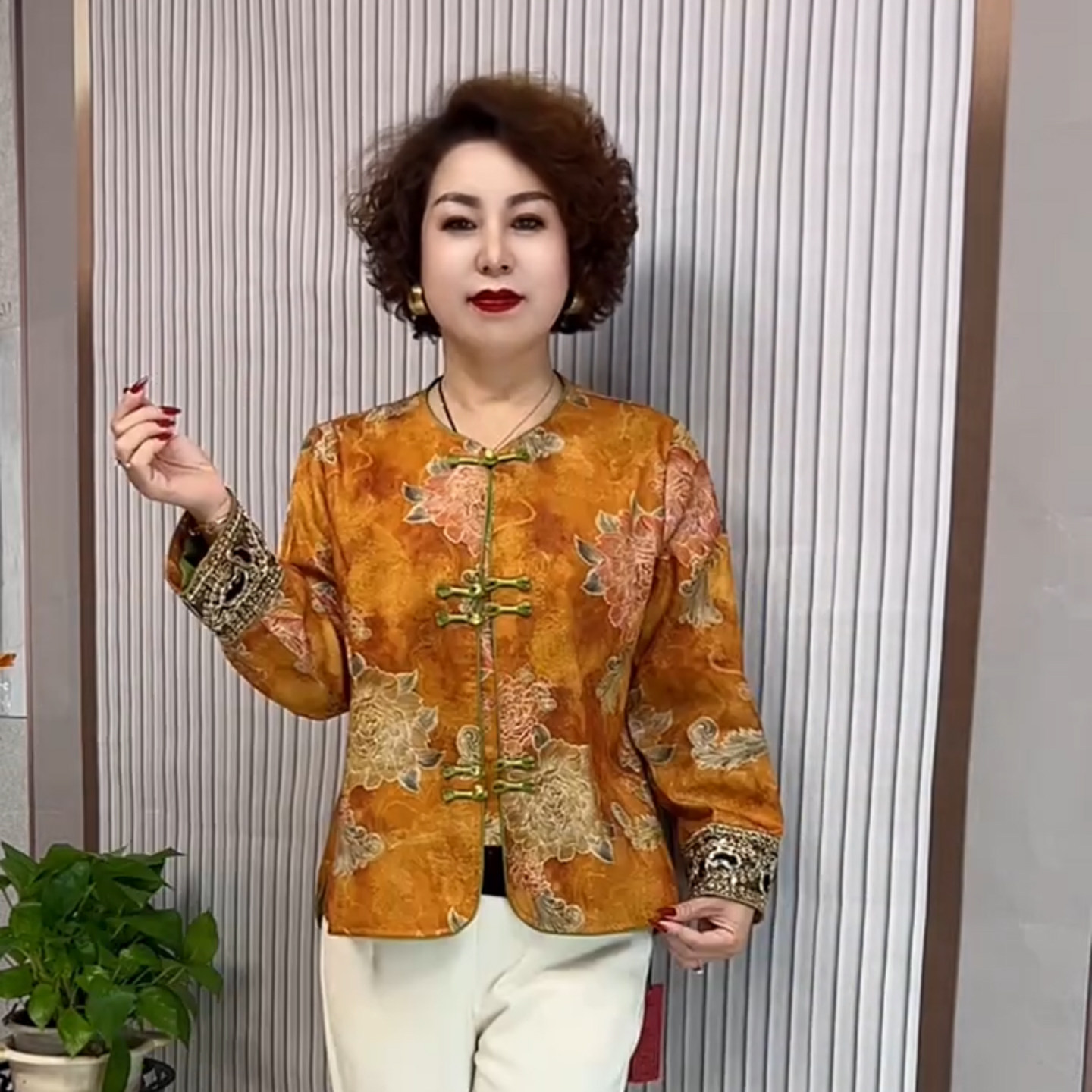 2026新款妈妈春装新中式外套中年女装国风唐装中老年印花上衣褂子