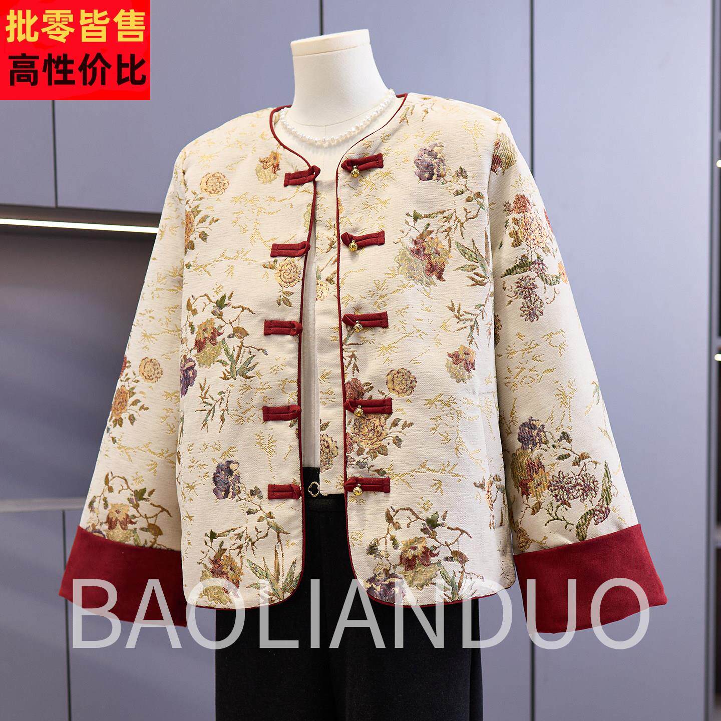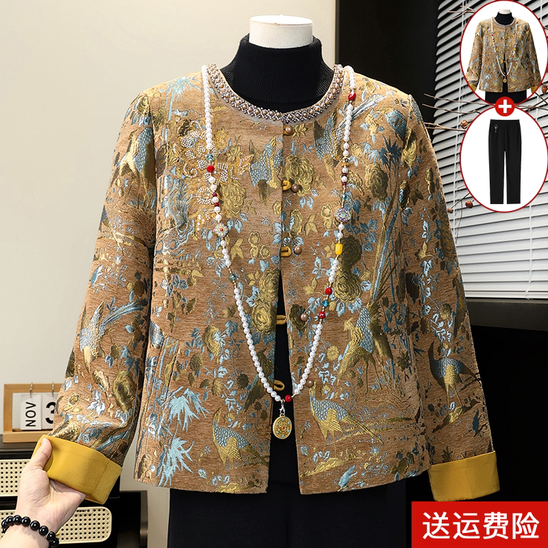 2026春装新款中年妈妈提花外套中式复古国风重工钉珠开衫唐装上衣