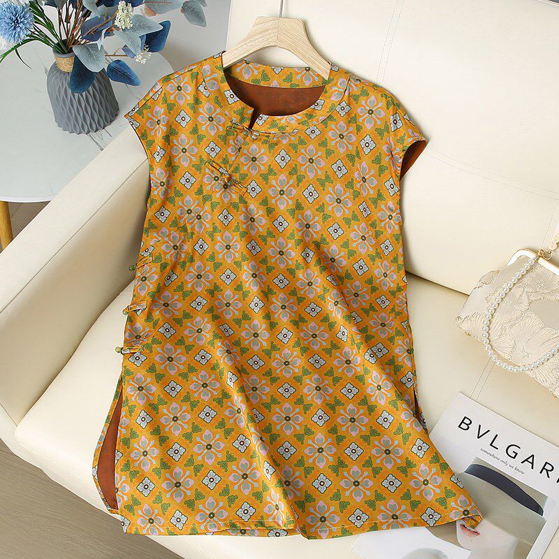 中国风短款旗袍上衣女改良复古大码中年妈妈唐装茶艺服民族风女装
