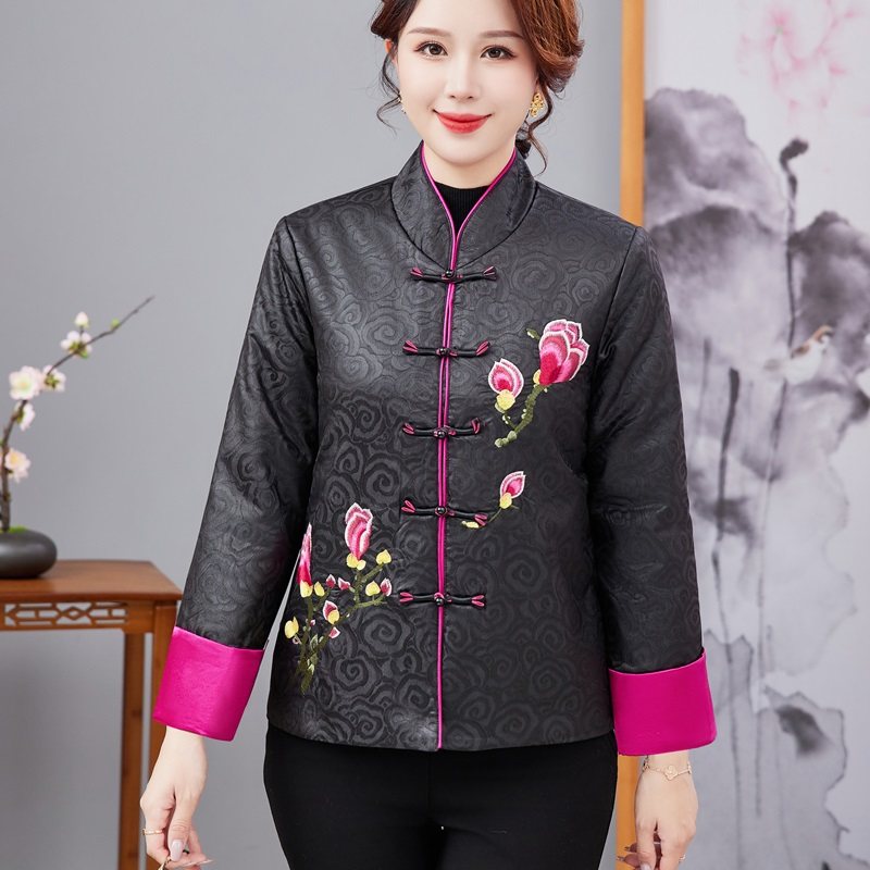 中年妈妈装2024新款民族风服饰立领盘扣唐装玉兰花刺绣中式外套女