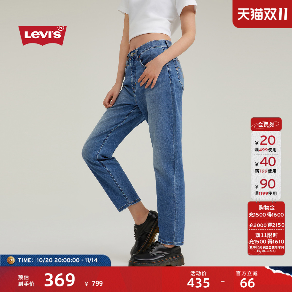 Levi's李维斯女士美式复古烟管裤休闲通勤简约随搭蓝色牛仔长裤