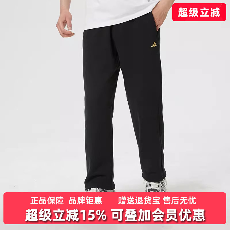 Adidas阿迪达斯黑金直筒长裤男裤春季新款宽松运动裤休闲针织裤子
