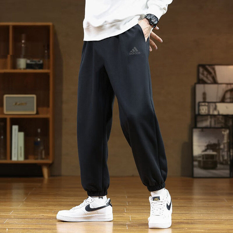 阿迪达斯男裤长裤秋冬运动裤宽松休闲裤束脚裤加绒保暖裤子IB4048