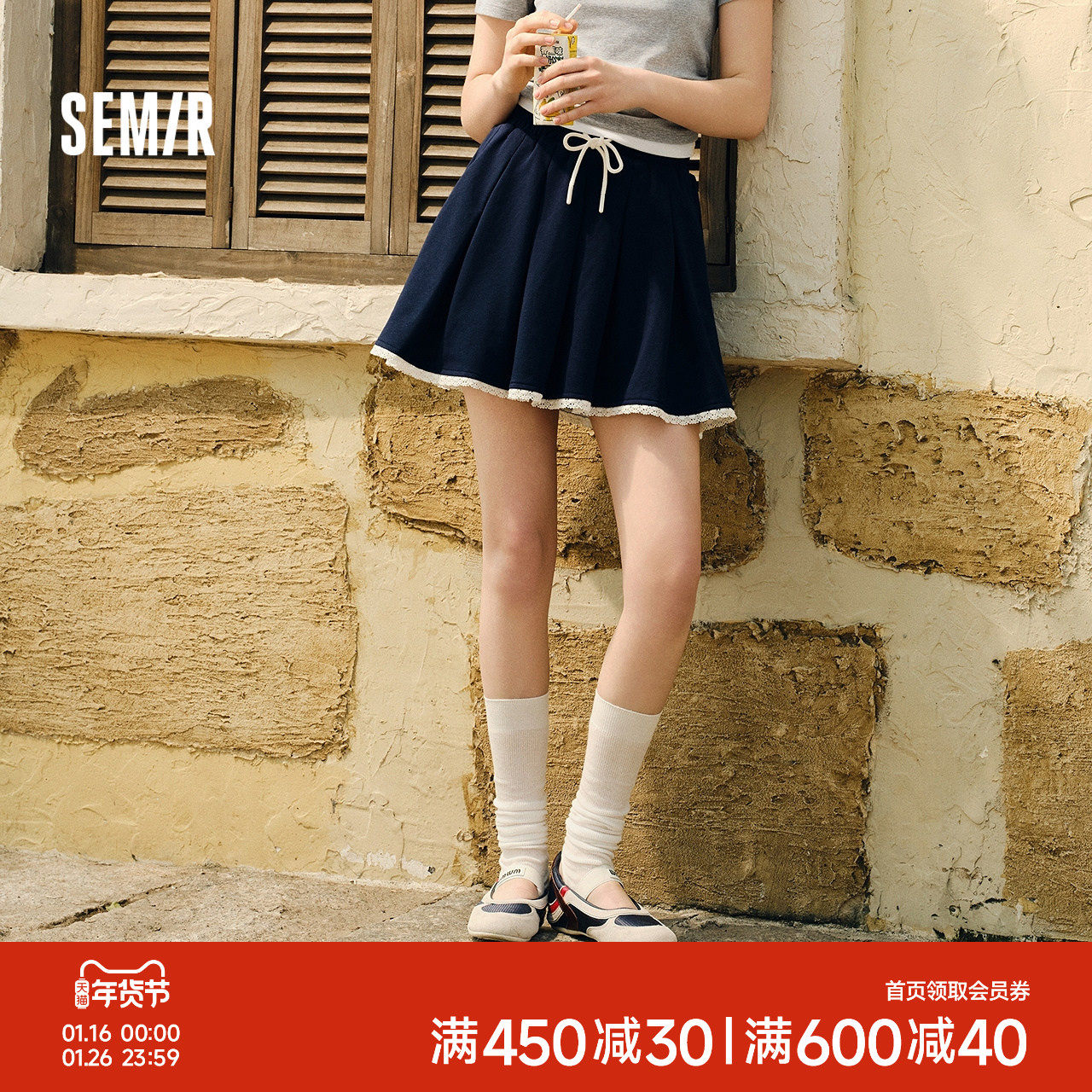 森马半身裙女蕾丝花边百褶裙温柔俏皮2025夏季新款松紧腰短裙甜美