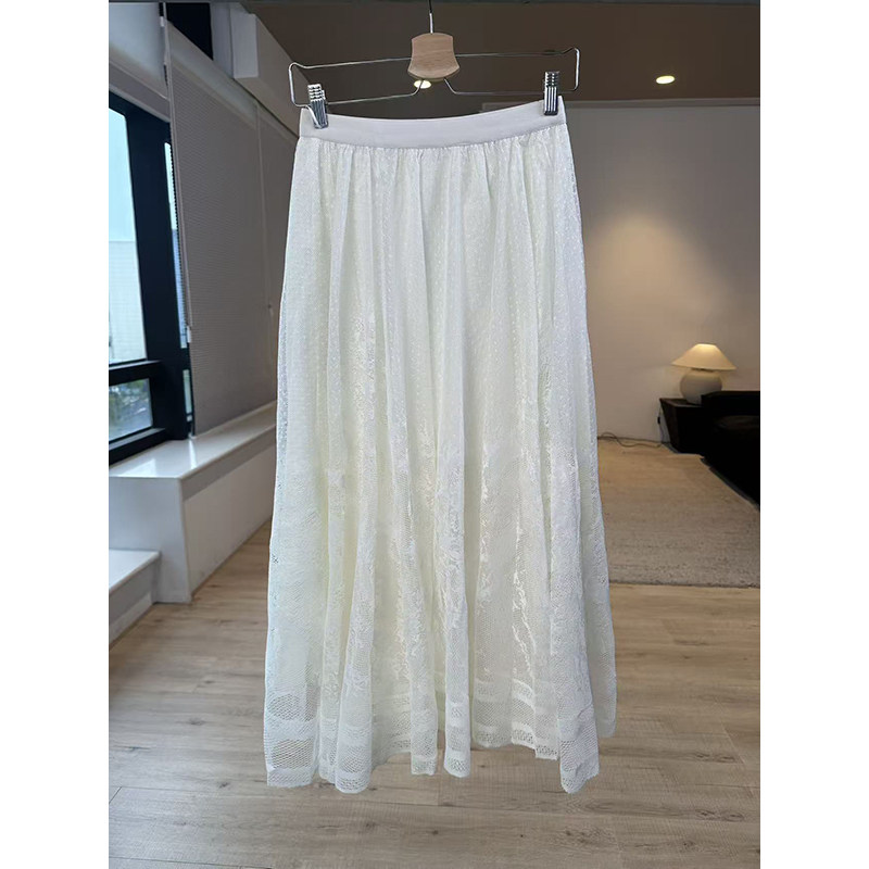 白蕾丝半身裙春季新款外贸女装百搭半透视松紧腰显瘦中长裙19373