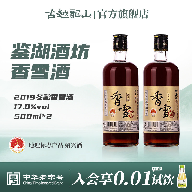 鉴湖绍兴黄酒2019年冬酿甜型香雪酒500ml*2两瓶装绍兴酒