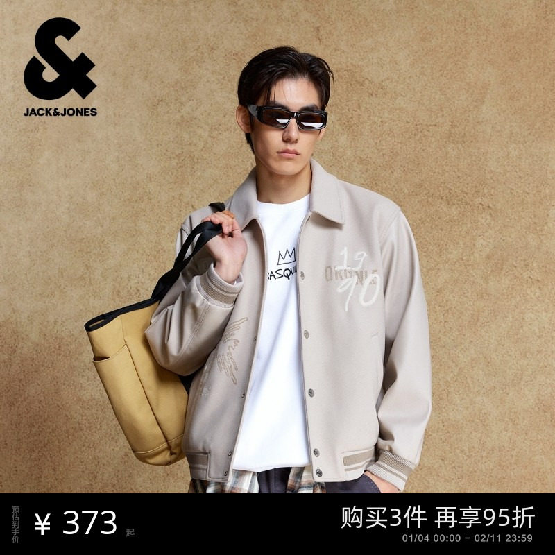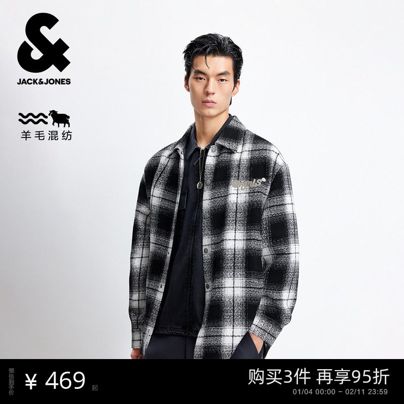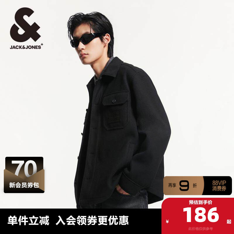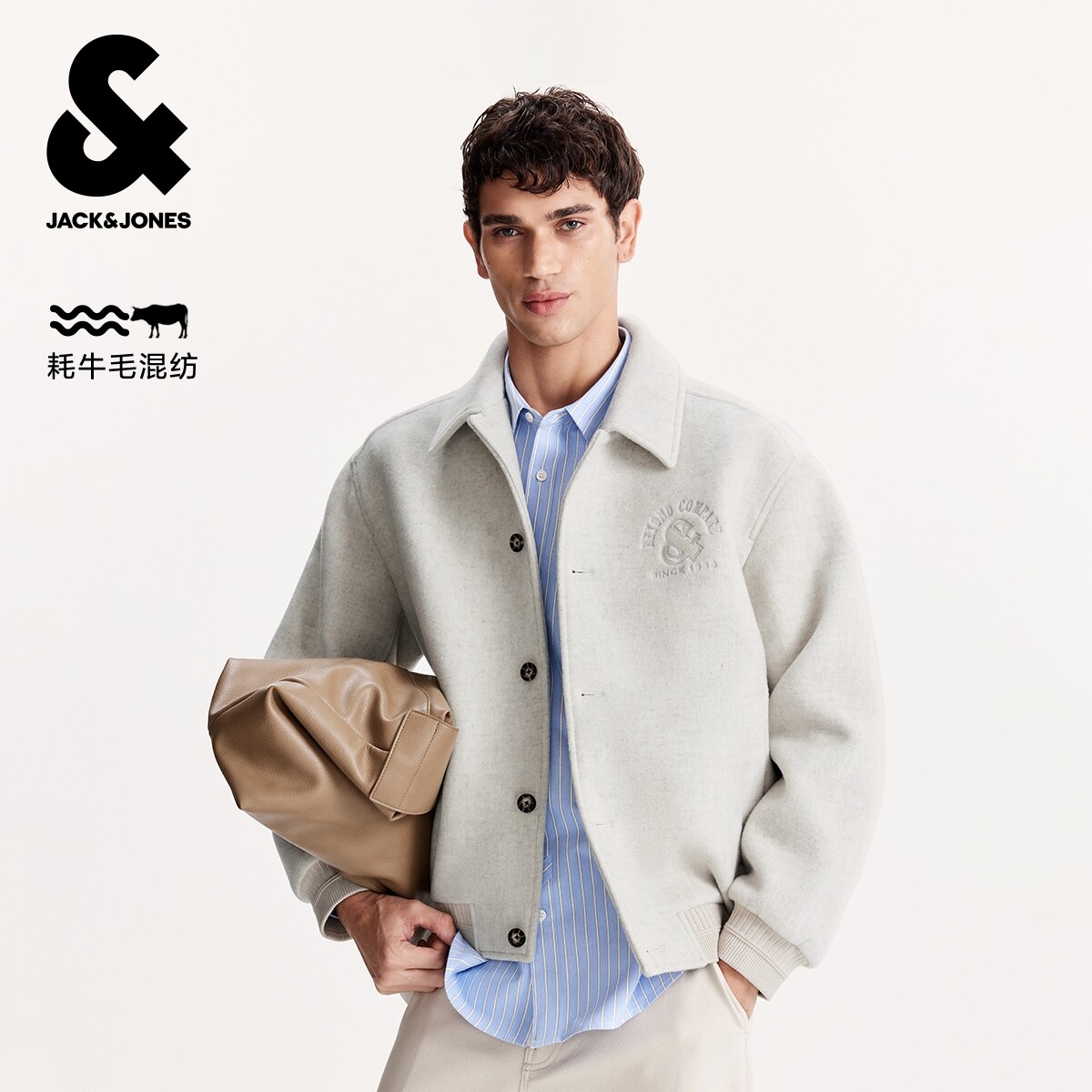 杰克琼斯2025年秋冬新款男装毛呢大衣时尚百搭外套贴布刺绣上衣