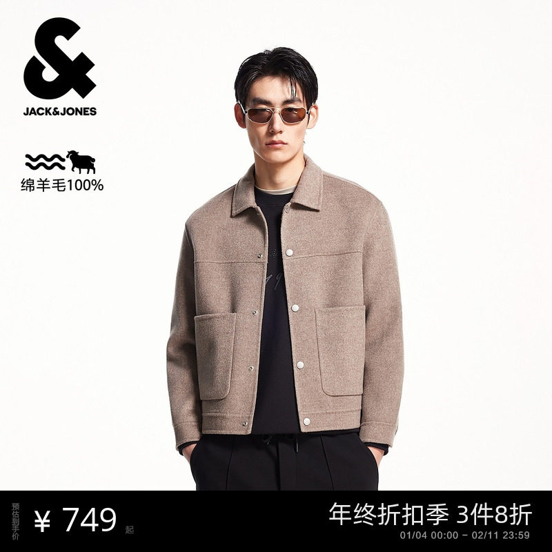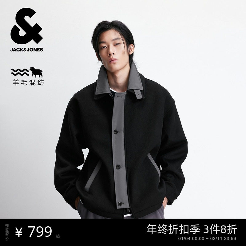 杰克琼斯男装士2025年秋冬新款男生翻领毛呢大衣经典百搭舒适夹克