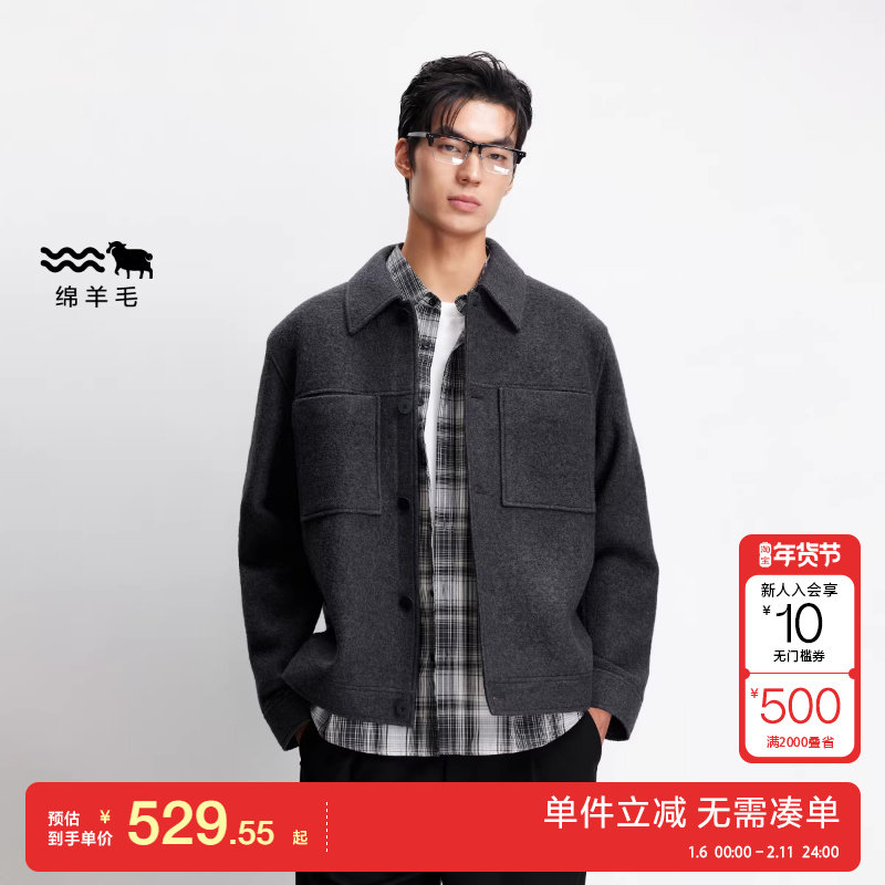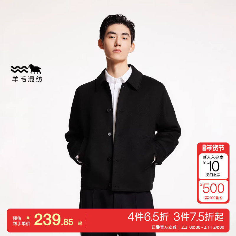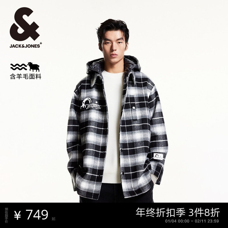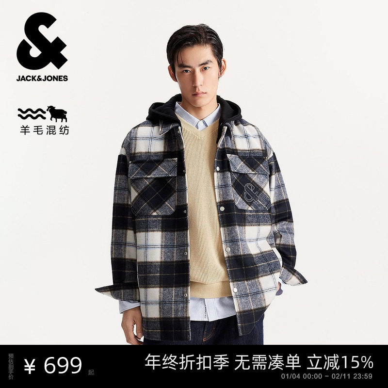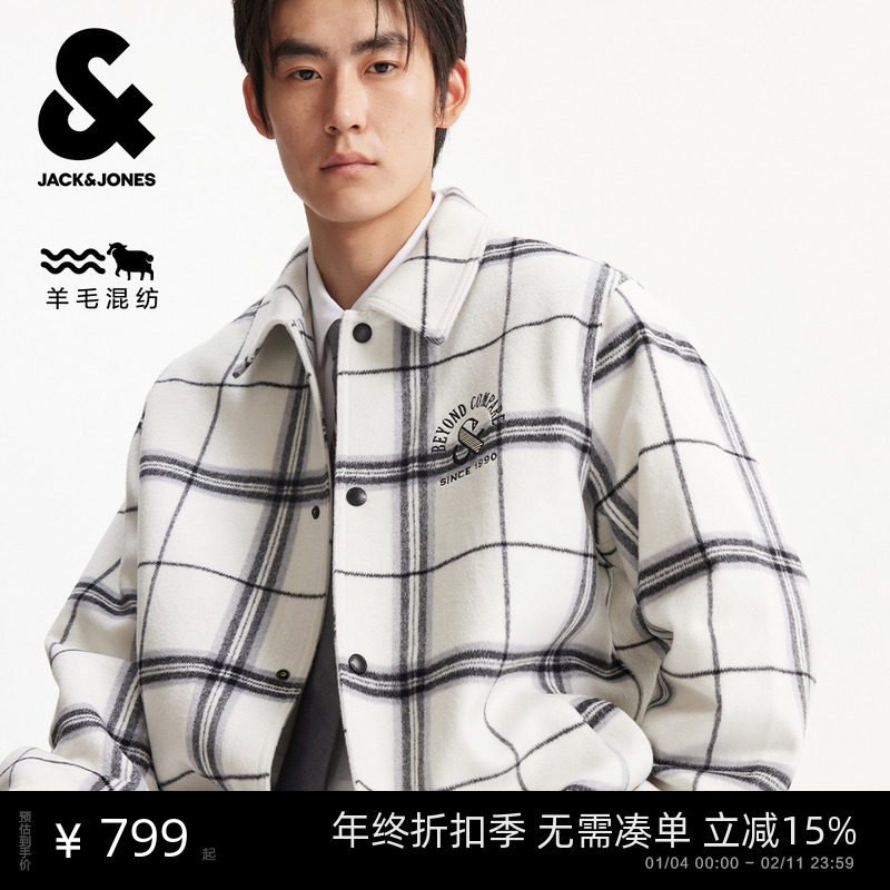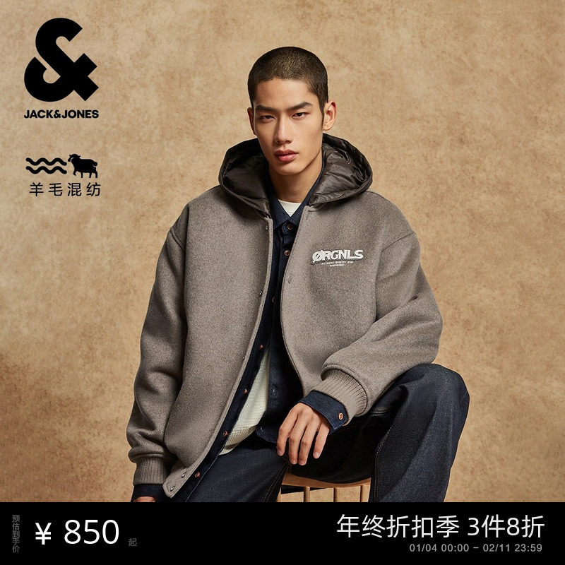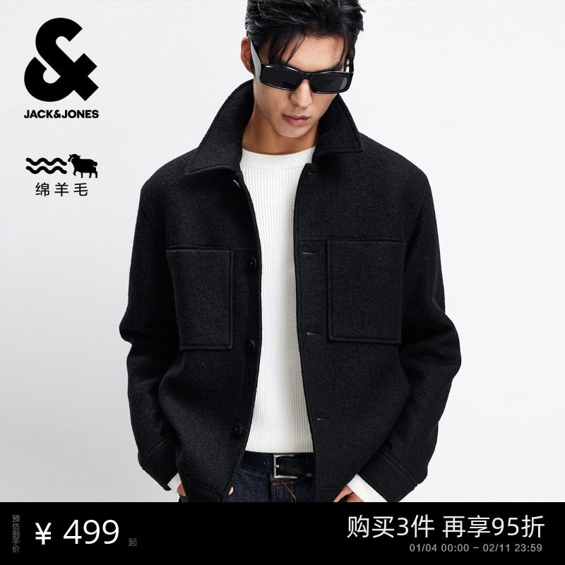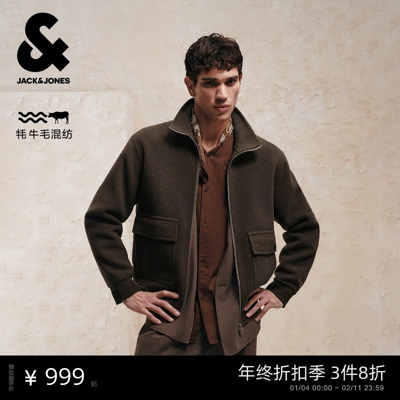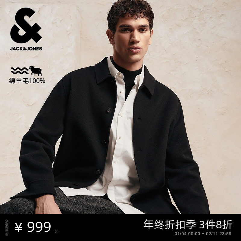 【纯羊毛】杰克琼斯男装秋毛呢外套柔软舒适保暖精致刺绣商务通勤