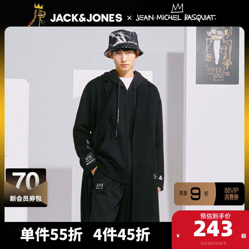 杰克琼斯奥特莱斯秋冬Basquiat联名衣服毛呢长款风衣外套男士男装