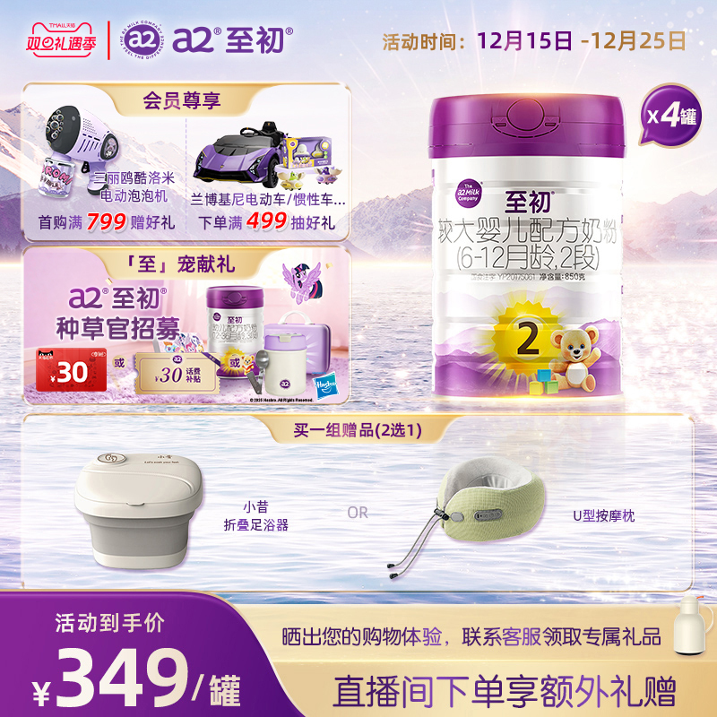 a2至初较大婴儿配方奶粉二段2段850g*2 官方旗舰店新西兰原装进口
