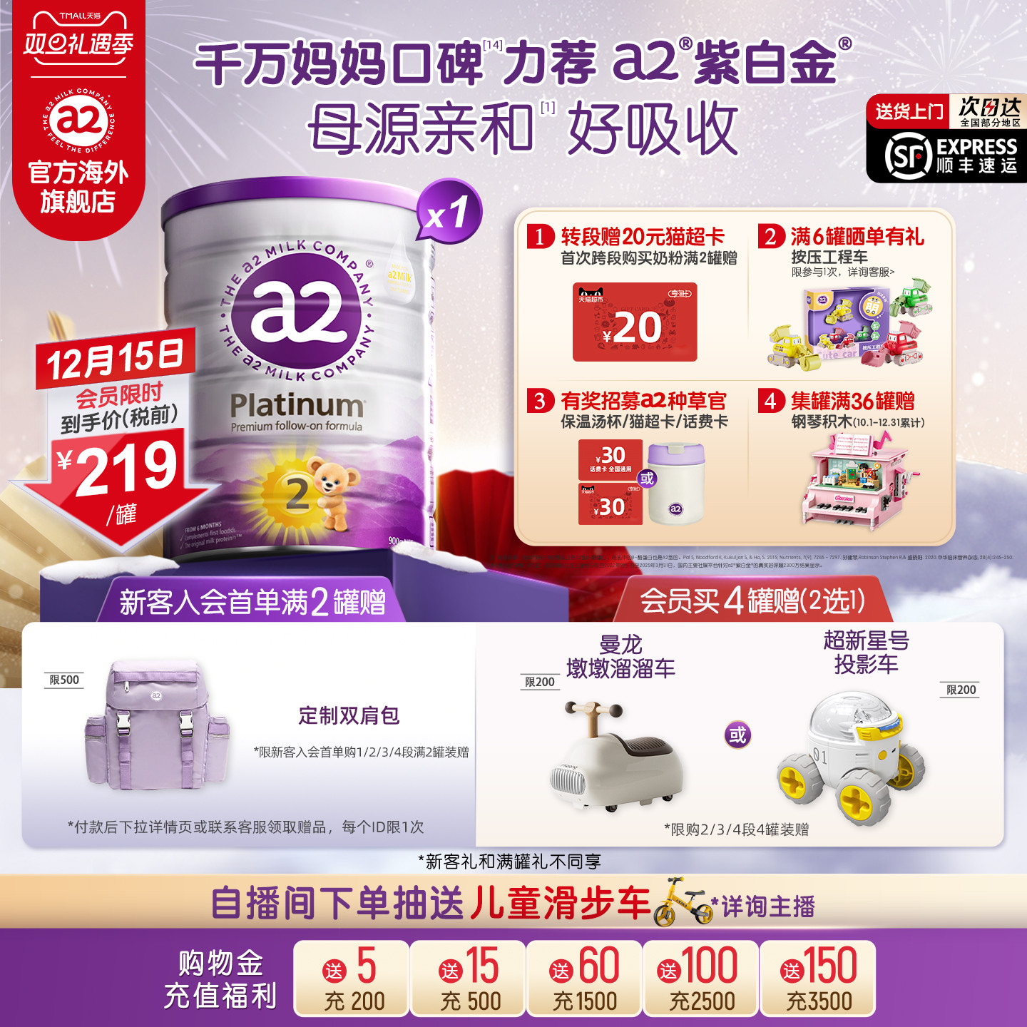 [官方旗舰]a2进口紫白金二段2段较大婴儿配方奶粉6-12月900g*12罐