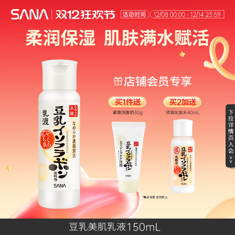 日本sana莎娜豆乳美肤乳液化妆水护肤保湿补水乳套装滋润水润