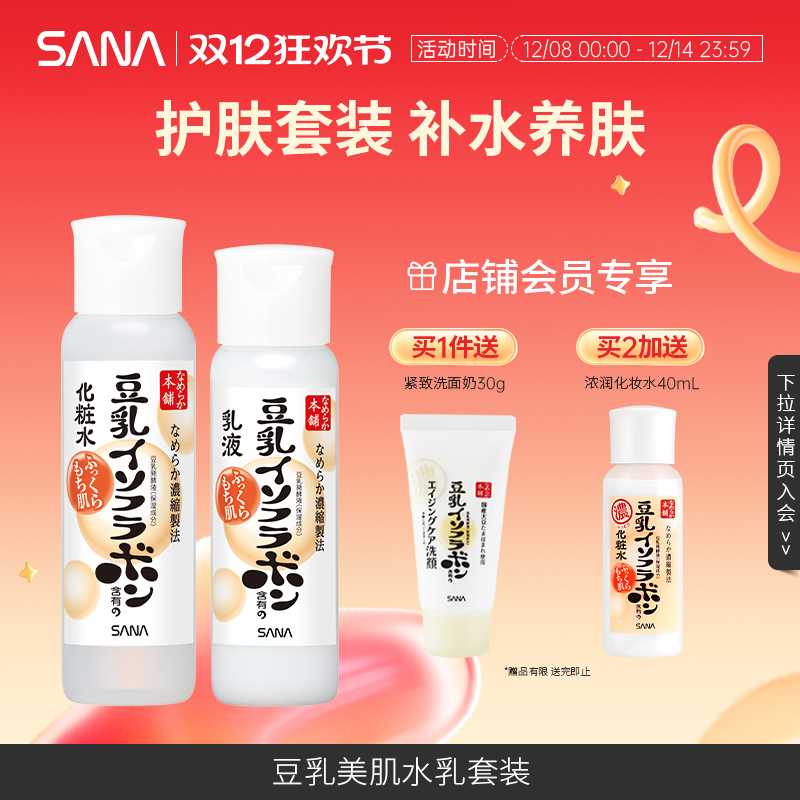 SANA豆乳洗面奶化妆水乳液套装保湿补水抗皱紧致敏感肌学生孕妇