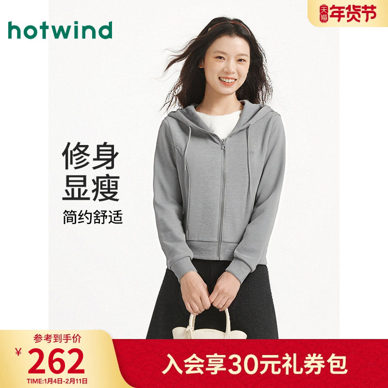 热风女士连帽卫衣2025年秋季新款宽松休闲开衫内搭卫衣早秋外套