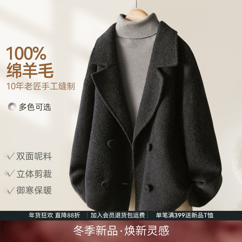IHIMI海谧爆款小个子西装羊毛大衣女士2025秋季时尚短款毛呢外套