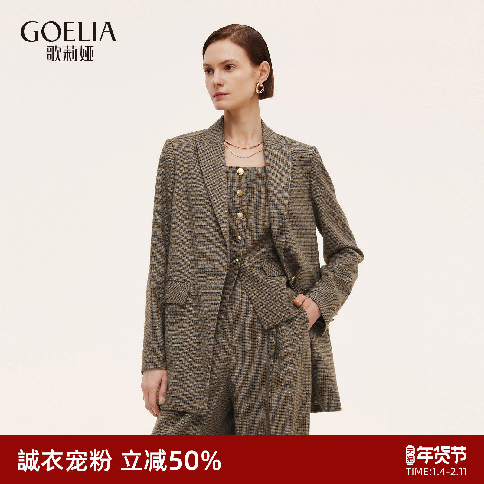 直降5折|歌莉娅复古格纹西装女士外套2025新款秋季职场通勤穿搭