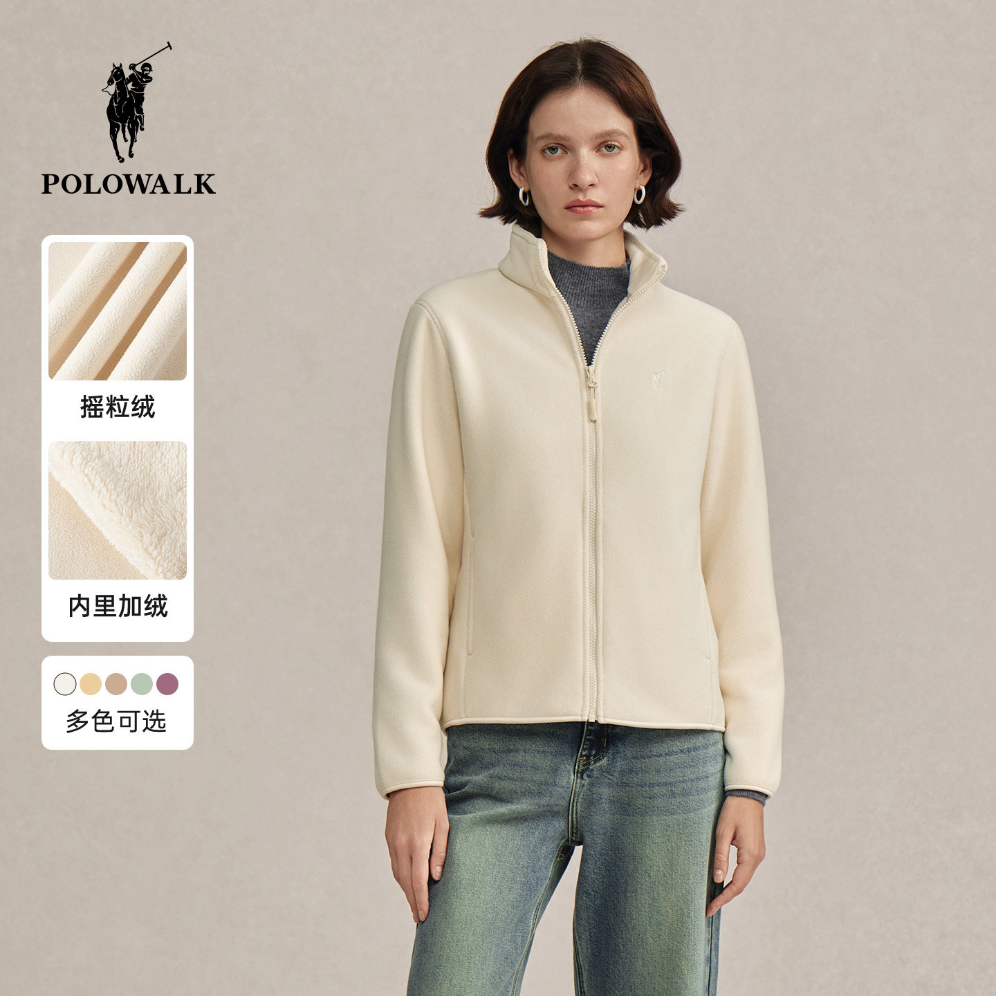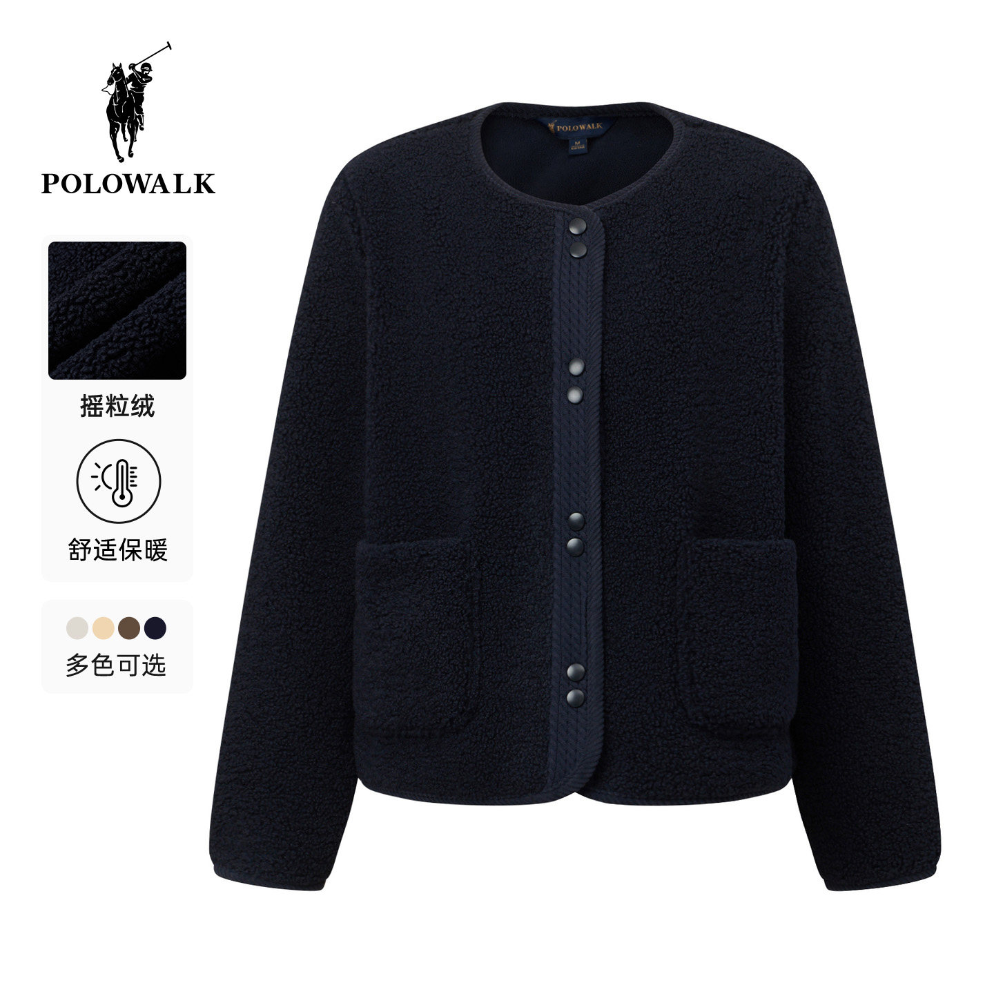 POLOWALK女式外套2025秋季新品摇粒绒百搭圆领简约气质绒感外套女