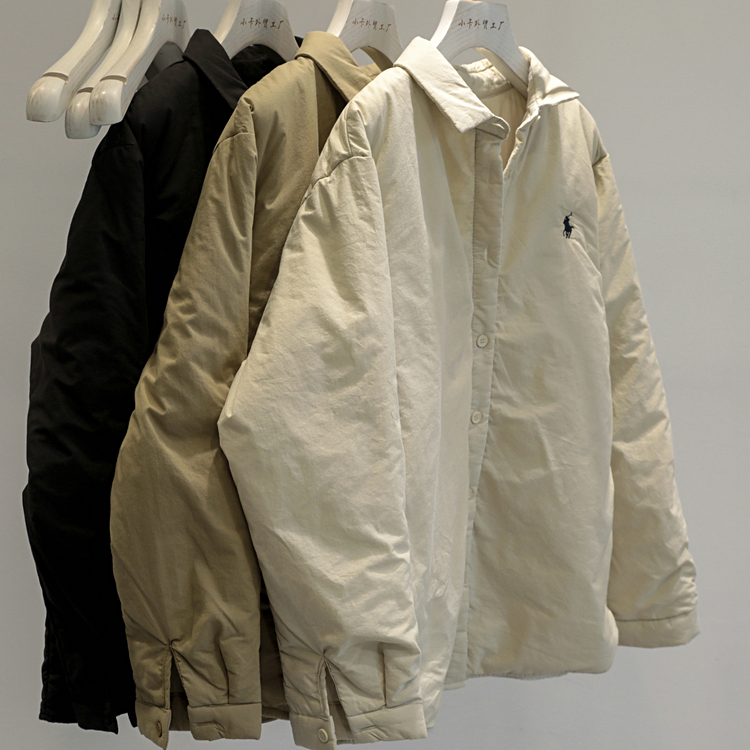 布景棉服女中长款冬季新品简约轻薄直筒宽松单排扣衬衫领棉衣1724