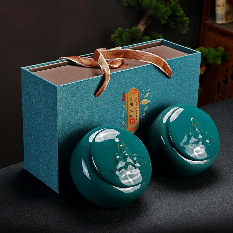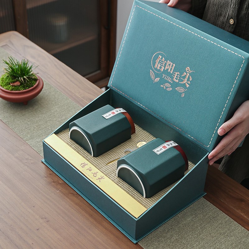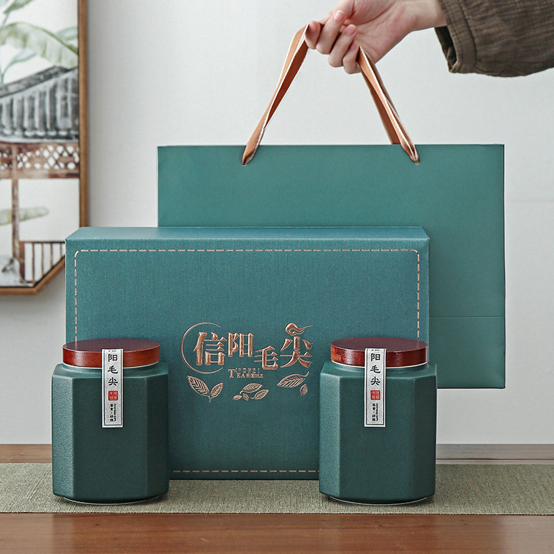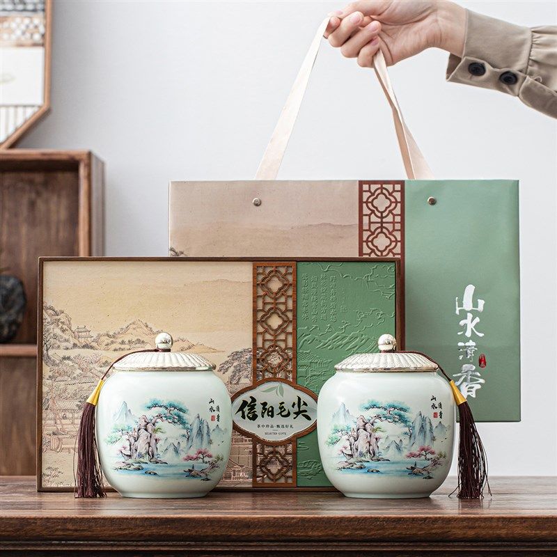 高档信阳毛尖礼盒空盒大容量陶瓷茶叶罐新款绿茶包装礼品盒子批发
