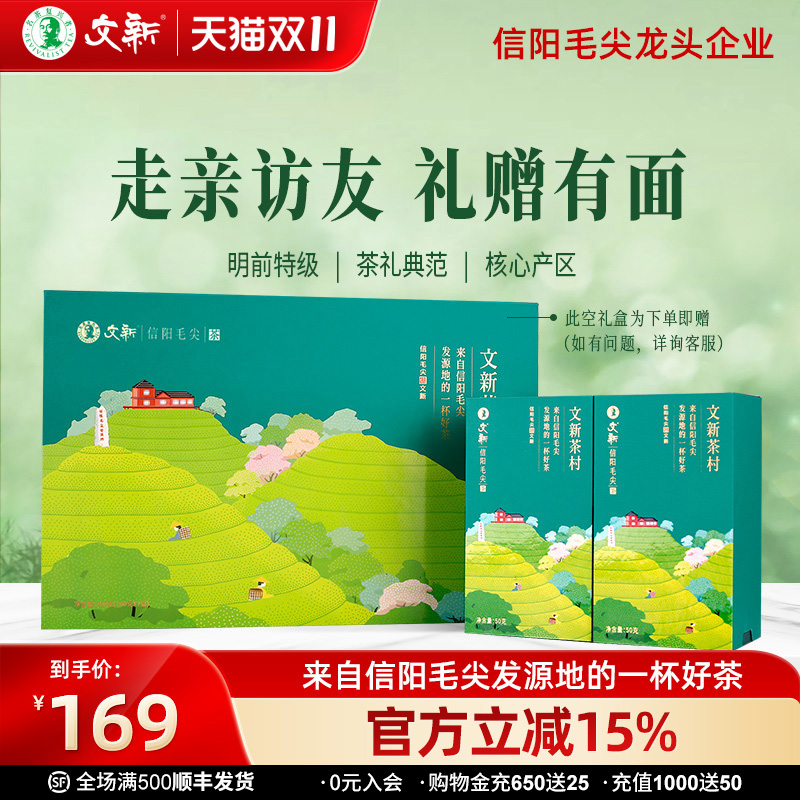 春茶上市文新信阳毛尖绿茶2025新茶雨前特级嫩芽茶叶礼盒装152g