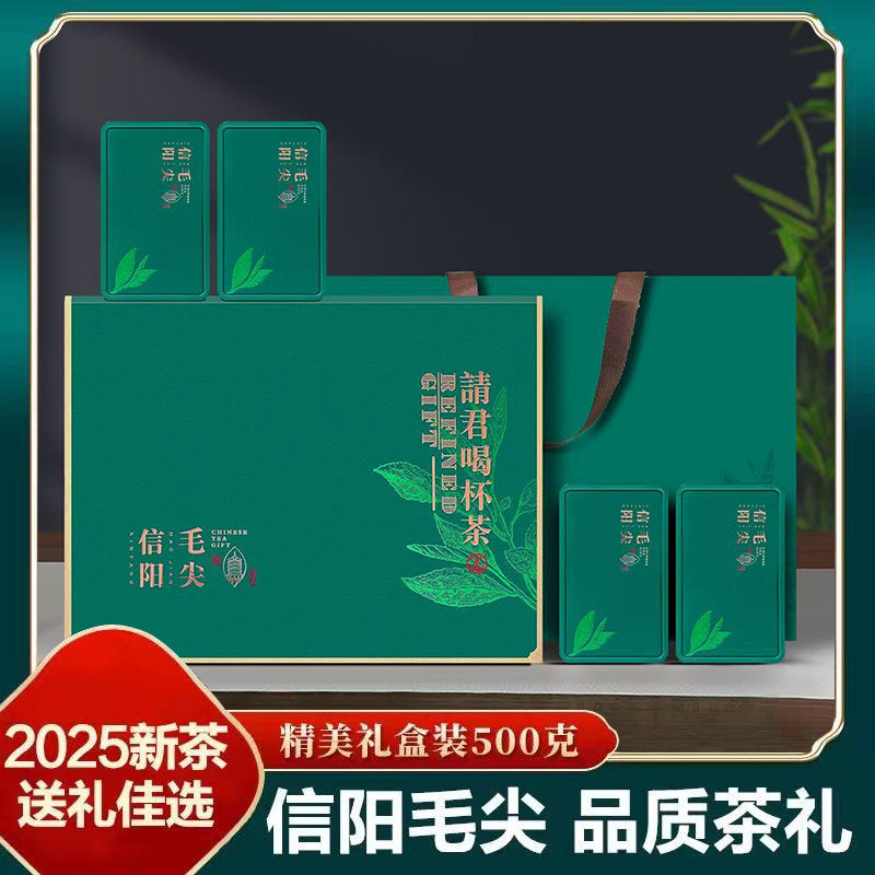 信阳毛尖礼盒茶叶绿茶雨前嫩芽叶正宗2025新茶500g礼品装节日送礼