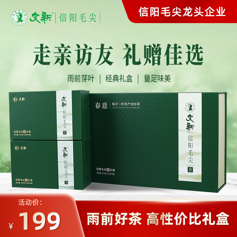 春茶上市文新信阳毛尖绿茶2025新茶雨前春意送长辈茶叶礼盒装200g