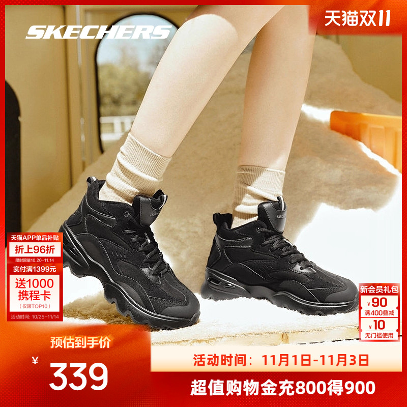 斯凯奇女鞋冬季款短靴加绒保暖雪地靴时尚冬靴高帮老爹鞋厚底增高