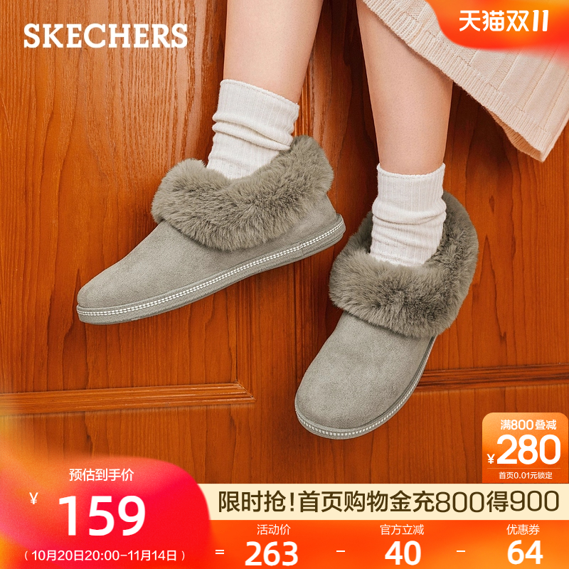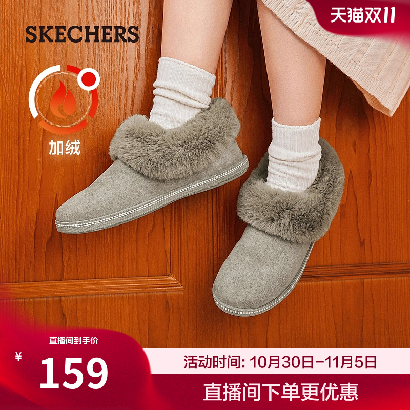 Skechers斯凯奇女士加绒短靴绒面超柔软贴脚保暖锁温耐磨雪地靴