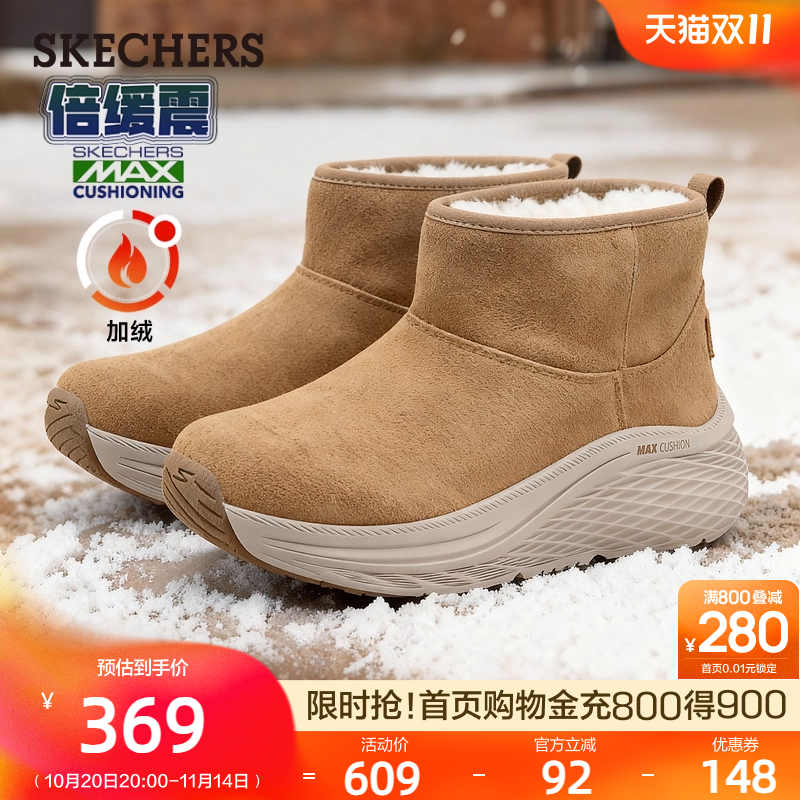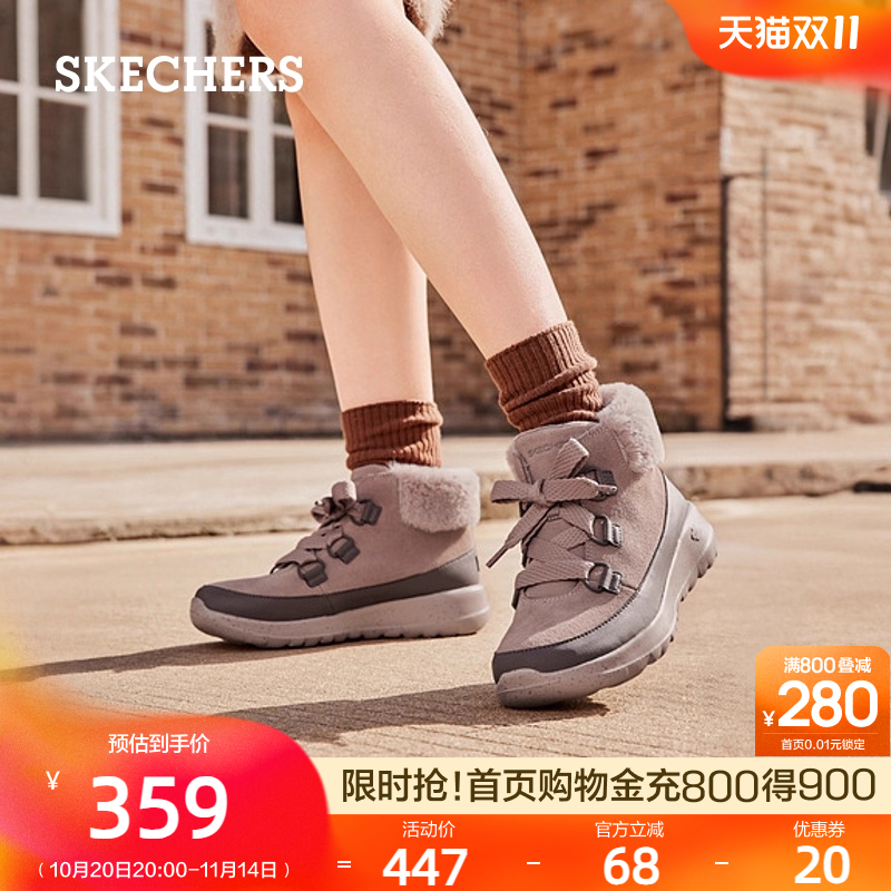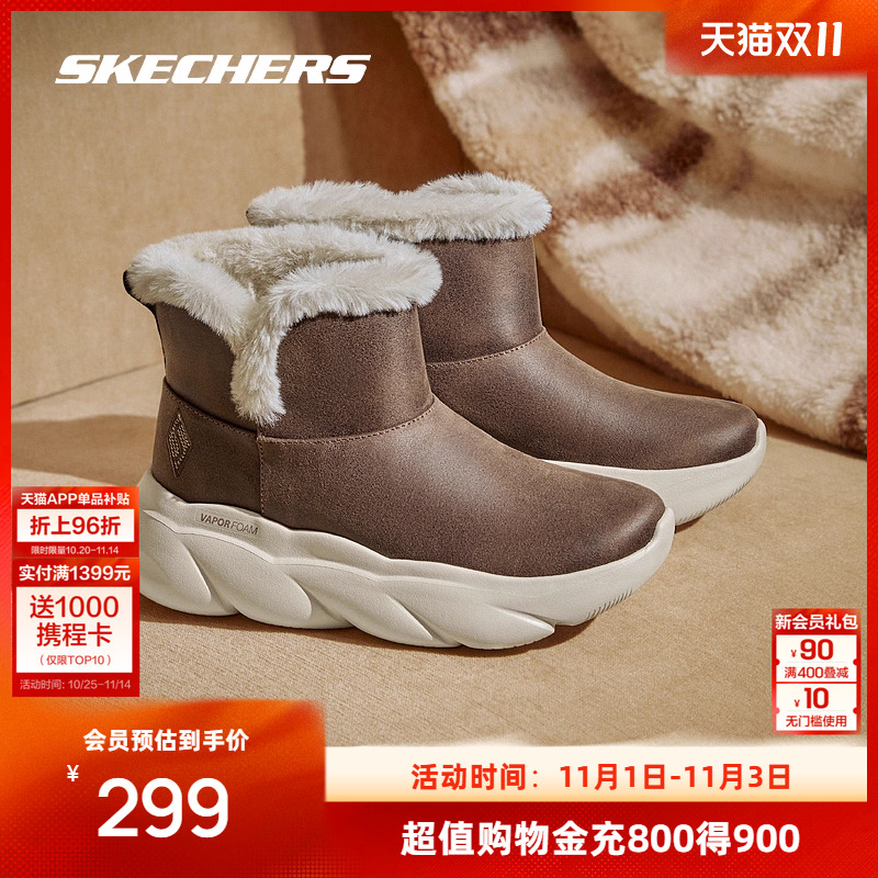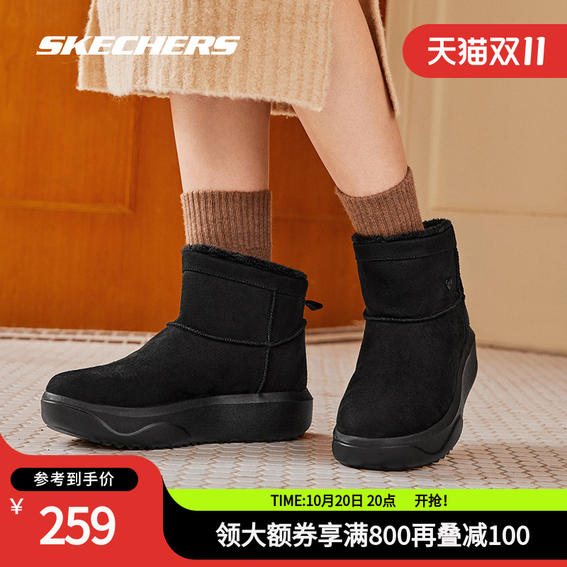 Skechers斯凯奇女士加绒短靴保暖锁温冬季运动休闲轻便雪地靴