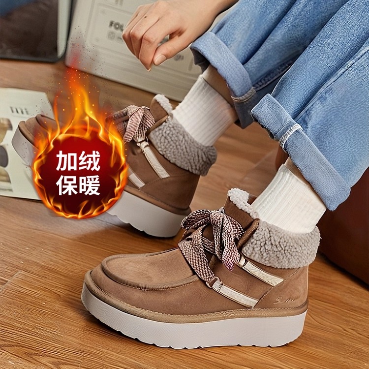斯凯奇女士加绒短靴冬季柔软舒适厚底增高耐磨减震保暖轻便易打理