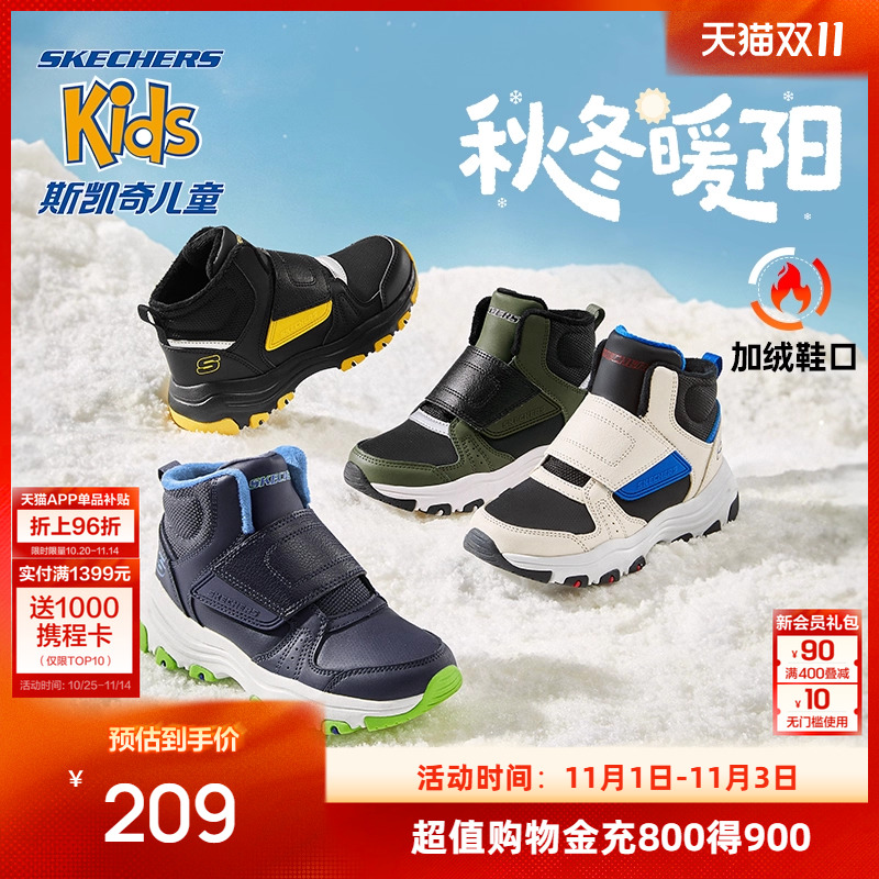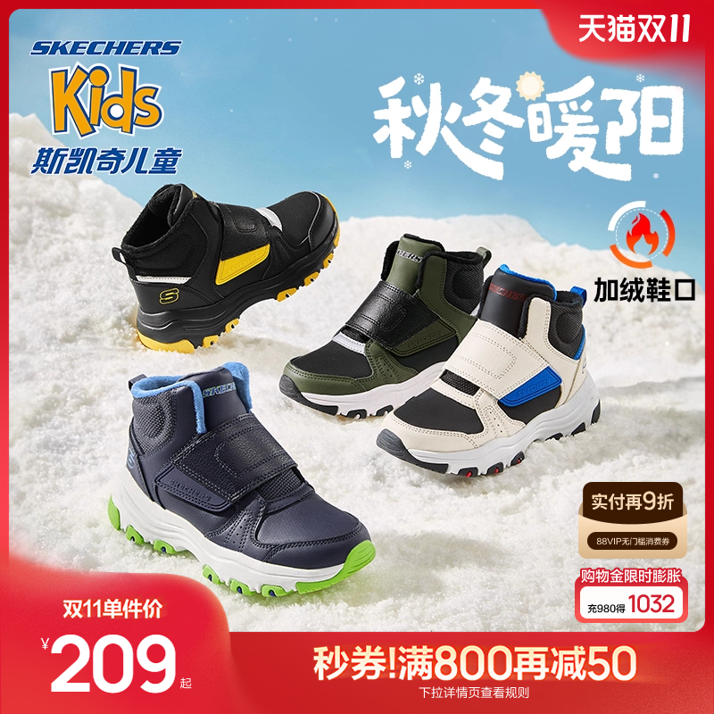 Skechers斯凯奇儿童二棉鞋秋冬女大童加厚短靴加绒保暖雪地靴男童