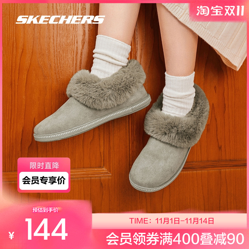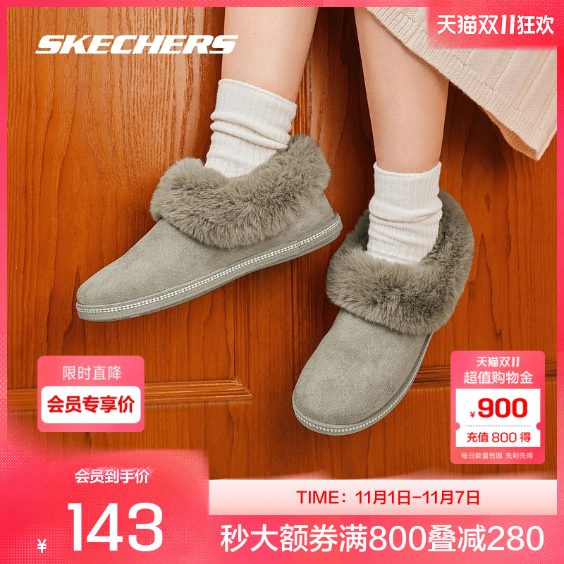 斯凯奇冬季女时尚加绒保暖毛毛鞋短靴舒适轻质乐福鞋舒适棉鞋冬靴