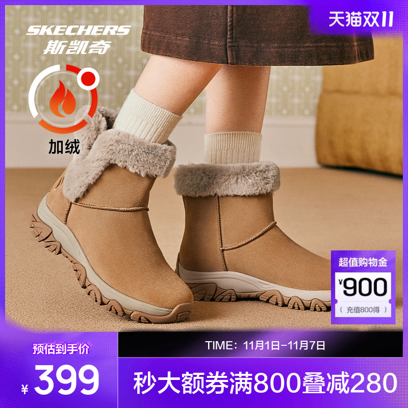 Skechers斯凯奇女鞋正品时尚短靴绒面柔软舒适冬季加绒保暖雪地靴