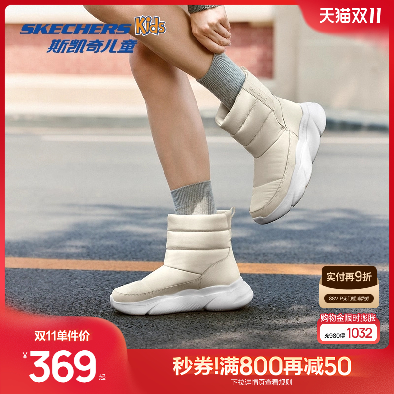 斯凯奇outlets儿童雪地靴冬季舒适时尚女大童加绒保暖大棉鞋短靴