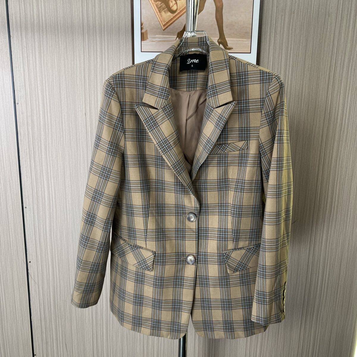 9007撤柜DS西装宽松韩版气质休闲新款格子女装西服外套长袖