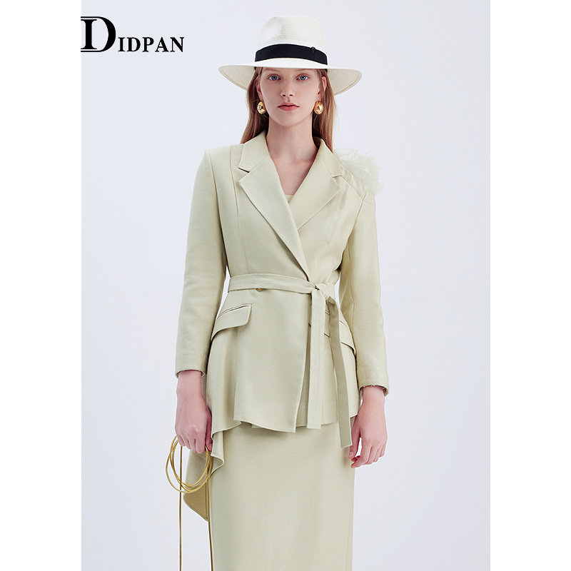 IDPAN女装西服冬季新款职场通勤修身不对称下摆羊毛西装外套