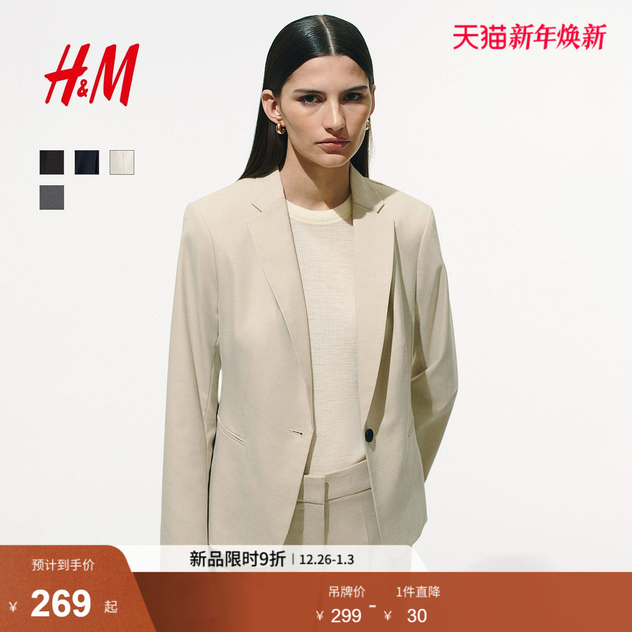 HM女装西装冬季时尚通勤法式修身商务正装干练西服外套0988242