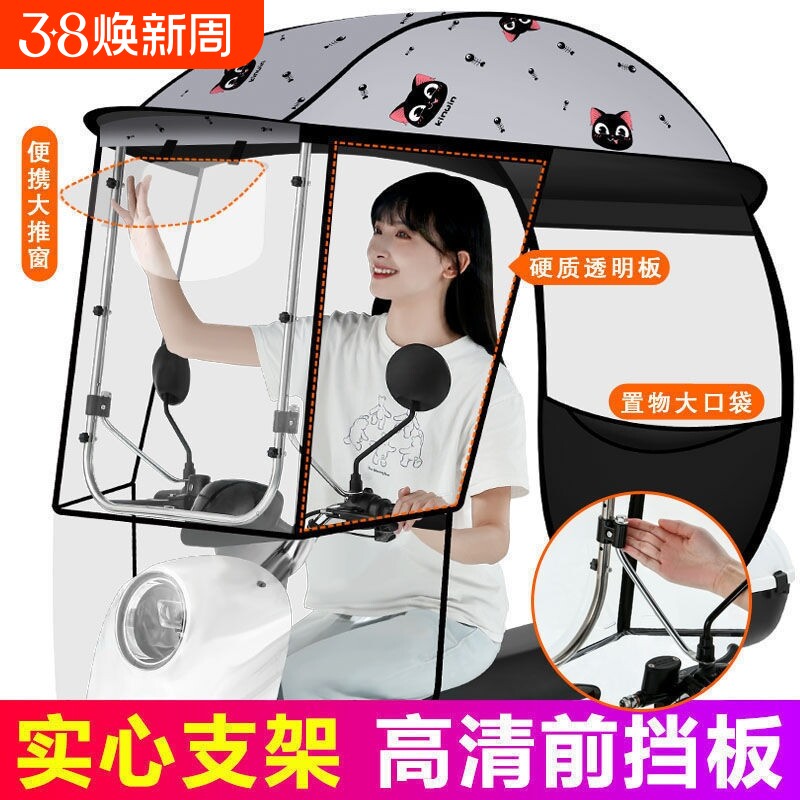 电动车雨棚遮阳棚新款升级8代黑胶后开窗雨篷电动车伞LOGO遮阳