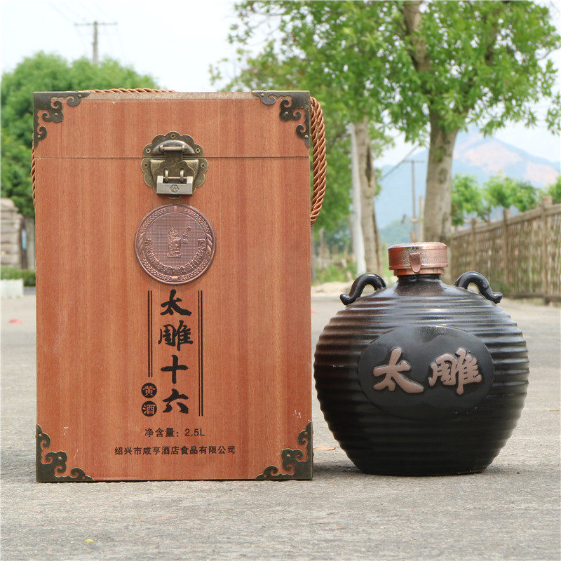 绍兴黄酒咸亨酒店礼盒坛装太雕十六太雕酒木箱装糯米黄酒2.5kg5斤