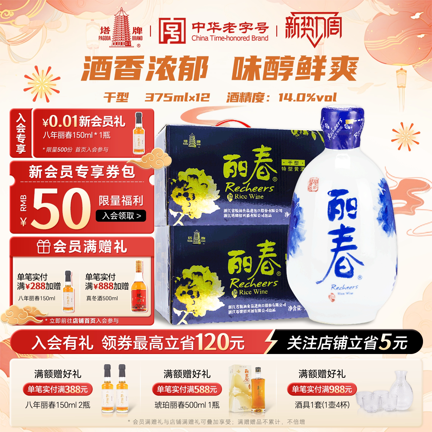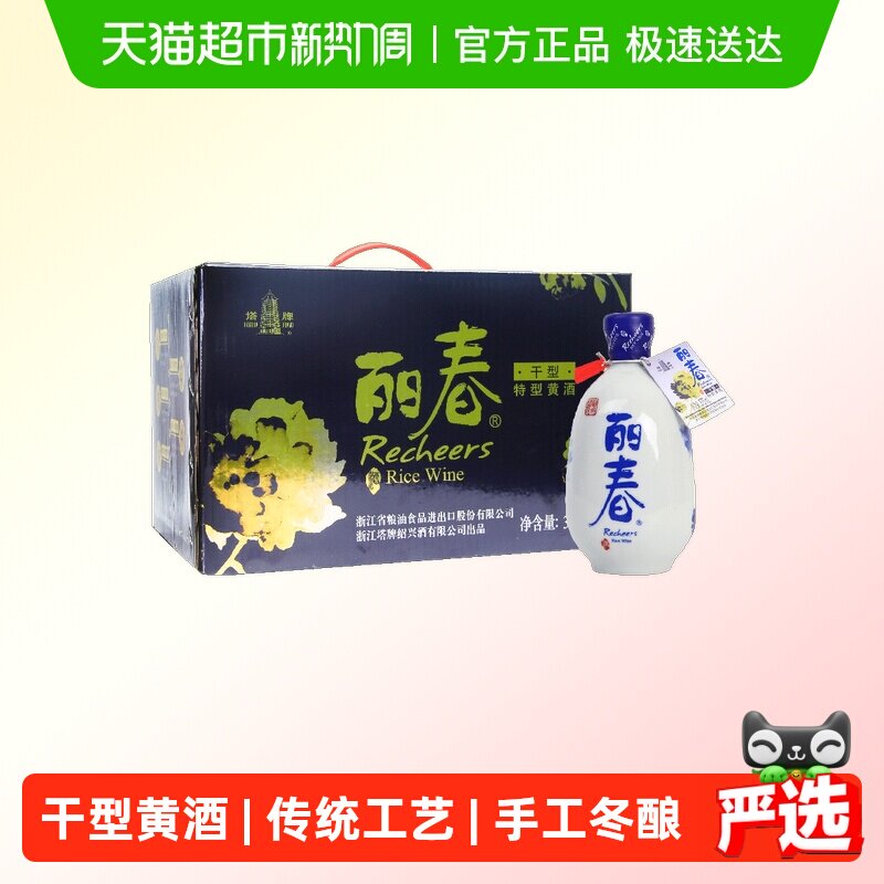 塔牌黄酒干型丽春酒375ml*6瓶*2箱装手工糯米花雕酒绍兴特产黄酒