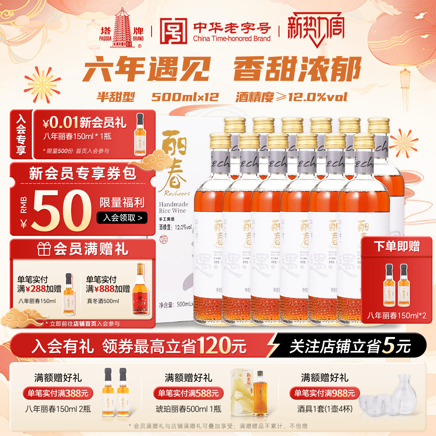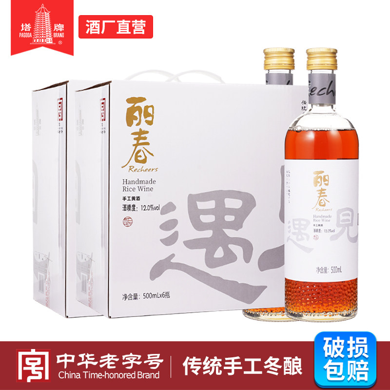 塔牌黄酒遇见丽春六年500ml*6瓶*2箱装礼盒半甜花雕酒绍兴产黄酒